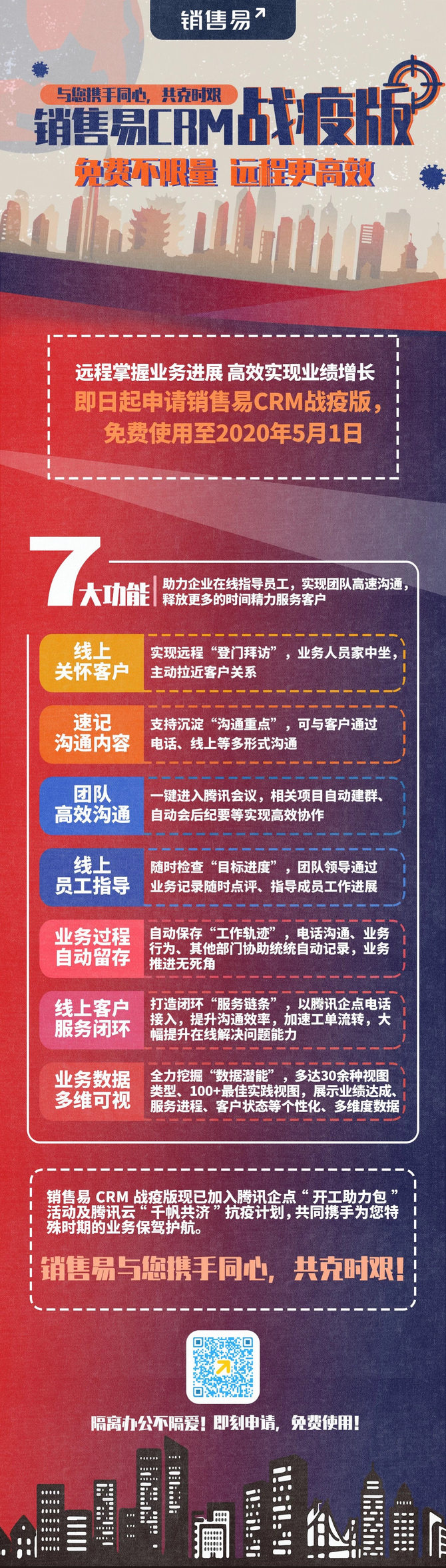 以上这些方法和措施,是销售易已经在执行的动作, 希望这些思路和措施能够帮到大家维持好销售团队的健康运作,及时调整心态和模式,支撑销售业务在疫情期间和结束后持续增长。最后,希望疫情能够尽快结束,让我们所有销售人再次出现在路上,为公司增长贡献更大价值。在这个艰难时刻,也希望所有企业和员工上下一心,艰苦奋斗,共克时艰!冬天终会过去,春天不远将至!
