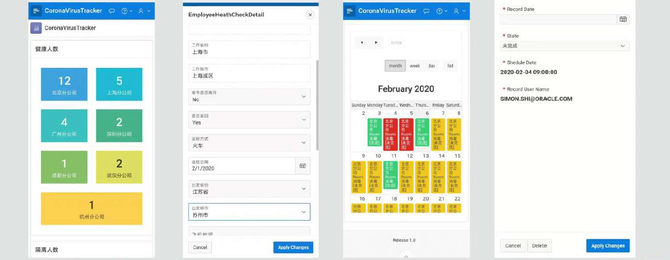 1. 免费为申请用户48小时内远程开发、上线疫情防控App。借助Oracle APEX低代码敏捷开发平台,48小时内即可上线定制化小程序,支持移动端访问,用于员工每日健康状况收集、分析和上报,以及企业防疫工作的部署。
