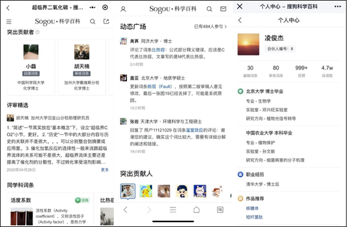 想要生产正确、严谨的知识,更需要科学的用户组织和良好的社群氛围。据了解,搜狗科学百科在首页、词条页、动态广场及个人中心等页面重点突出内容贡献者,希望让更多的人可以看到他们为科学百科所做的努力,打造良好的学术交流环境。