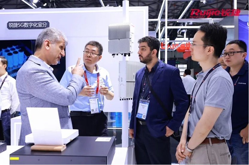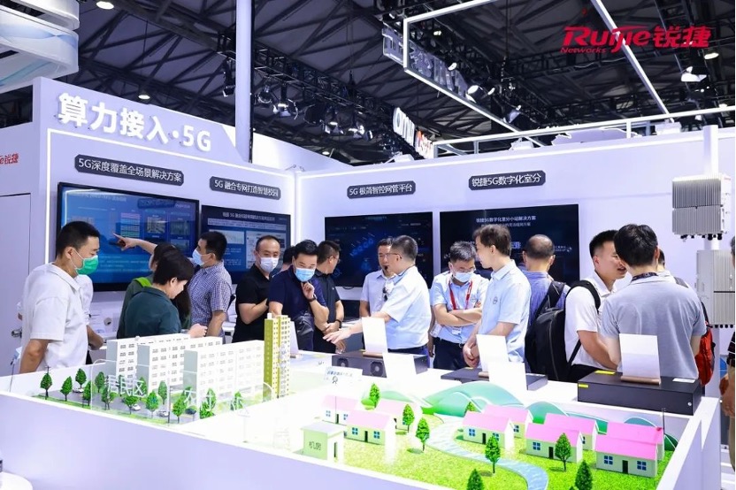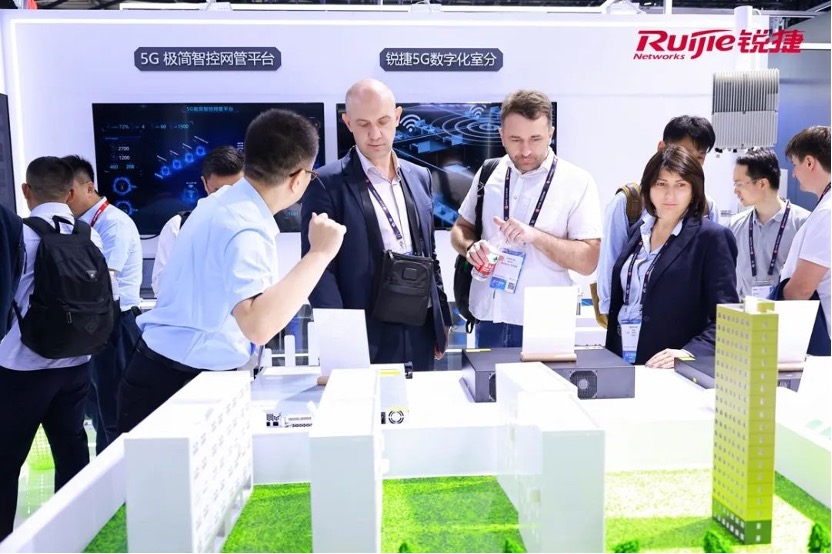 5G已逐步成为社会信息流动的主动脉、产业转型升级的加速器、数字社会建设的新基石,如何创新的建设一张低成本高质量的5G网络是行业的普遍关注。锐捷此次展示了全场景深度覆盖的5G数字化小站和 5G ToB方案,并以视频和场景沙盘形式呈现了室外的居民区和偏远农村,如何高质量、低成本实现5G网络覆盖。