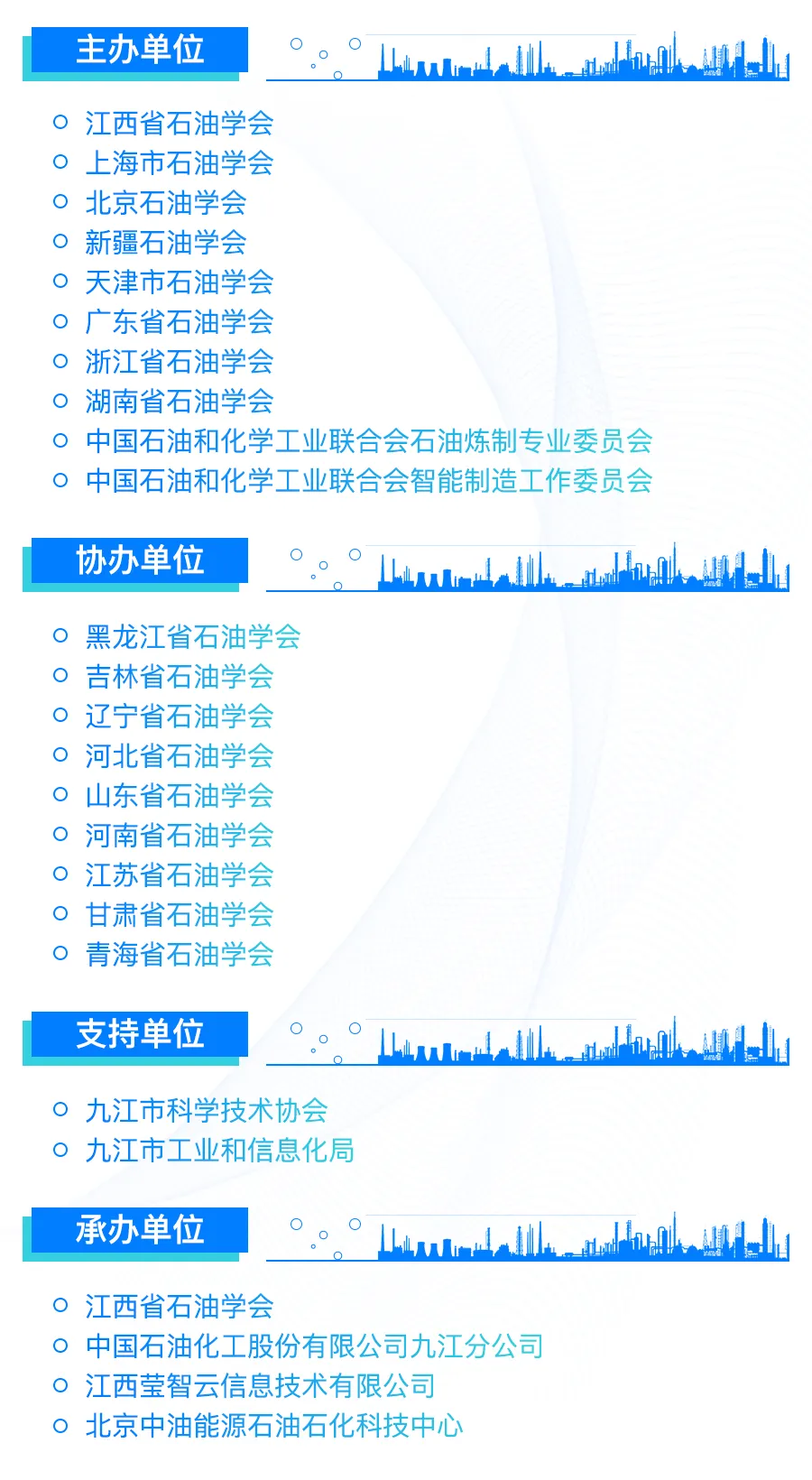 为深入开展炼油化工、生产装备、安全环保和智能化应用等技术交流,展示炼油化工技术创新发展最新成果,加快关键技术突破与成果转化,助力构建“油化并举、高端精细、数智融合”新格局,推动石油化工行业技术升级、智能发展和绿色低碳转型,促进石油化工行业高质量发展,各省(市、区)石油学会联合中国石油和化学工业联合会石油炼制专业委员会、中国石油和化学工业联合会智能制造工作委员会等决定共同举办“第六届炼化企业创新发展大会暨新技术成果展”。