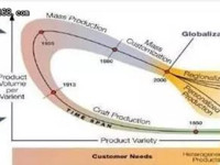 纵观整个制造业,制造模式正在发生变革,如图1,横坐标代表产品种类,下面的箭头代表客户的需求,沿箭头方向表示客户需求越来越分化,纵坐标代表每一种产品的产量,左边箭头代表需求,越往上需求越稳定。可以看出,制造业经历了从手工制造到大批量制造到大批量定制,再到今天的个性化制造,此图是很值得我们思考的,代表着制造模式的变化。